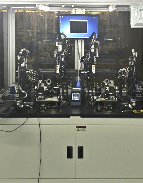 1、人工将VG、LID、以及光纤放入相应的料盒夹具后,设备自动批量组装FA光纤组件,设备具备自动点胶以及UV固化功能,包括FA前端头胶以及后端尾胶;可根据客户需求快速切换不同FA产品类型,如双纤、四纤以及八纤等。同时也可组装不同的光纤类型,例如散纤以及并带纤。单需更换不同的治具;